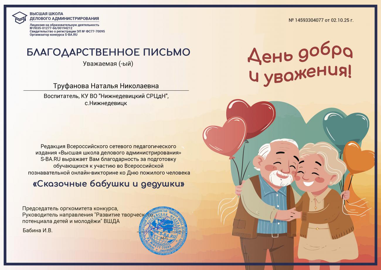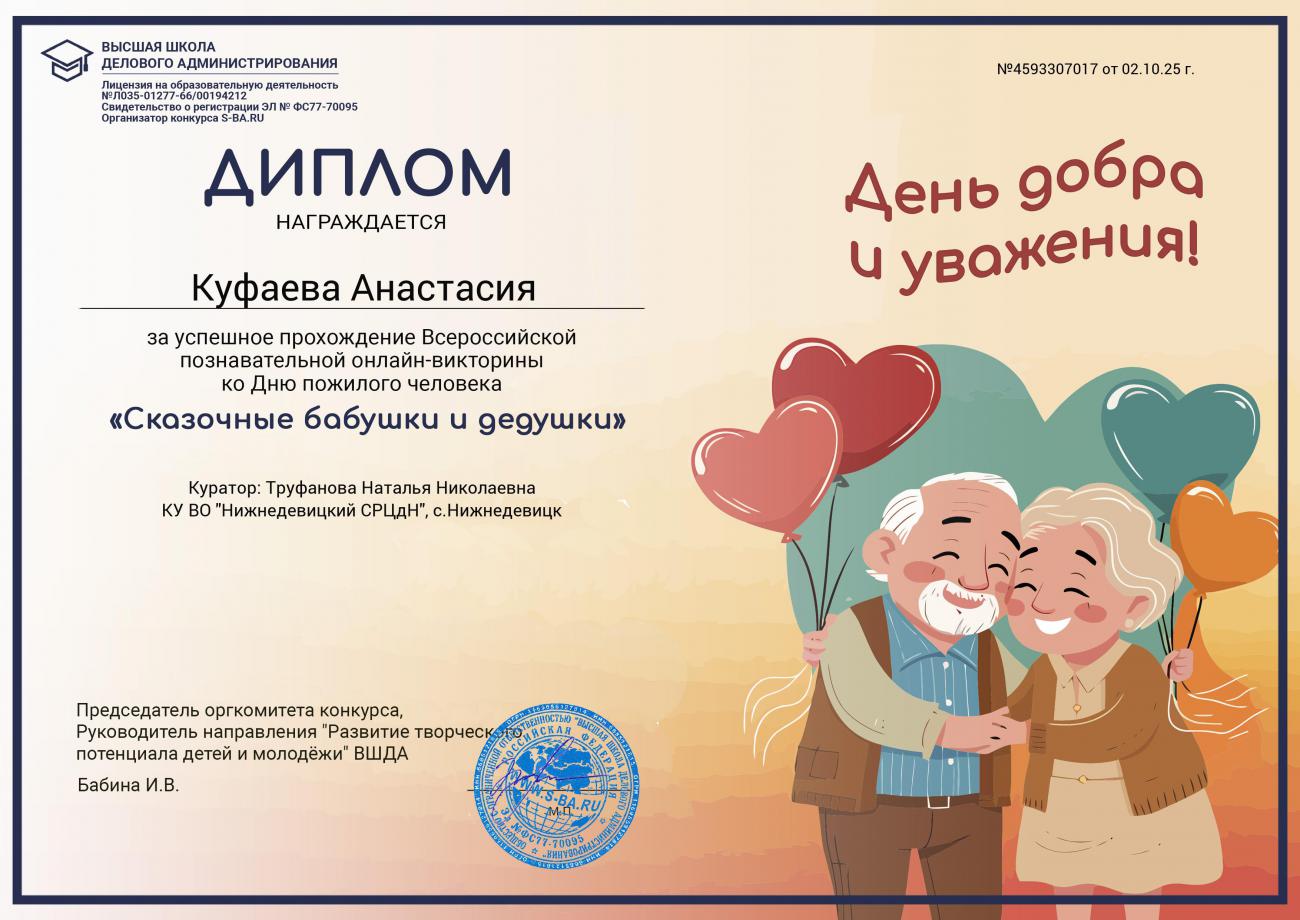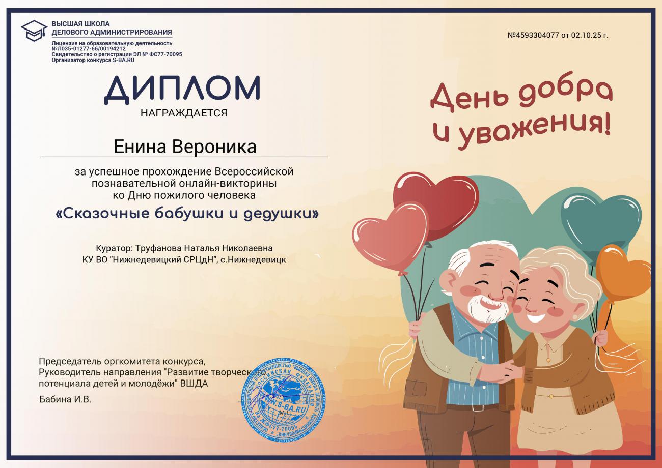 По результатам викторины участники награждены памятными дипломами.Главным подарком для ребят стало ощущение причастности к важному событию, посвящённому чествованию старшего поколения.