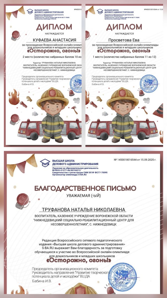 Воспитанники Центра проверили свои знания во Всероссийской онлайн – олимпиаде для дошкольников и младших школьников «Осторожно, огонь!»