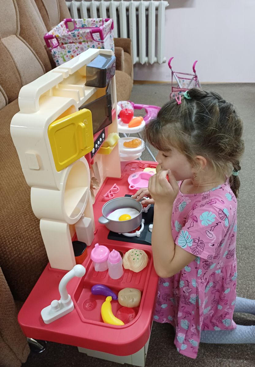 07.07.2021 года. Ролевые игры вплетены в повседневную жизнь каждого человека любого возраста. Что говорить о дошкольниках, для которых сюжетно - ролевая игра является основным видом деятельности и условием познания окружающего мира, это деятельность, в которой дети берут на себя те или иные функции взрослых людей в специально создаваемых ими игровых воображаемых условиях воспроизводят деятельность взрослых и отношения между ними. Общение ребенка это способность не только вступать в контакт и вести разговор с собеседником, но и умение внимательно слушать, использовать мимику и жесты для более эффективного выражения своих мыслей. С помощью сюжетных игр ребенок расширяет кругозор, изучает сферу человеческих взаимоотношений, развивает коммуникативные навыки. Сюжетные игры как способ постижения окружающего мира. Суть сюжетно-ролевой игры заключается в придумывании ребёнком вымышленной ситуации, выборе атрибутов и действии в соответствии с замыслом. Дети играют в «Магазин игрушек». Отличительной особенностью сюжетно-ролевой игры является то, что ее создают сами дети, а их игровая деятельность носит ясно выраженный самодеятельный и творческий характер. Педагог: воспитатель Просветова Н.А.