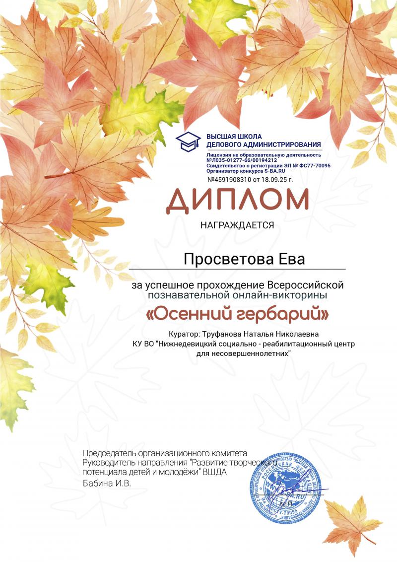 По итогам викторины все участники награждены дипломами за успешное выполнение заданий.