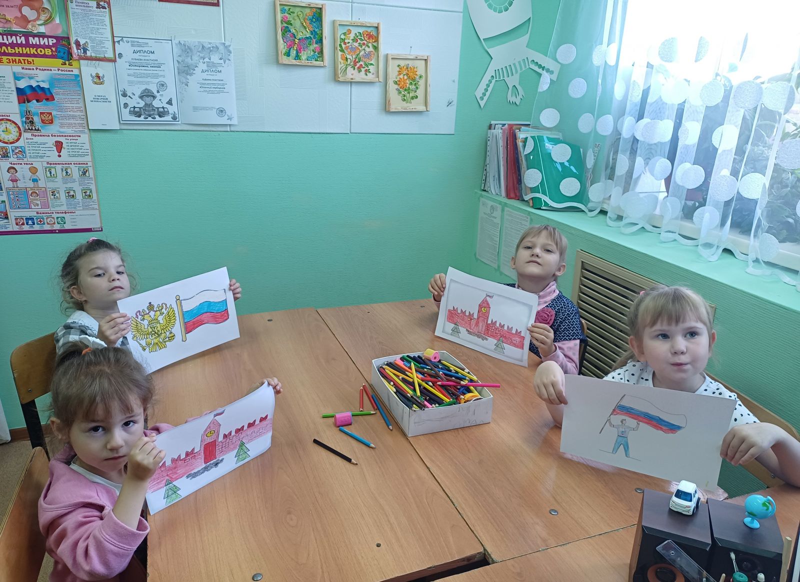 Юные художники с усердием выводили контуры Кремля, гордо реял российский флаг на детских рисунках.