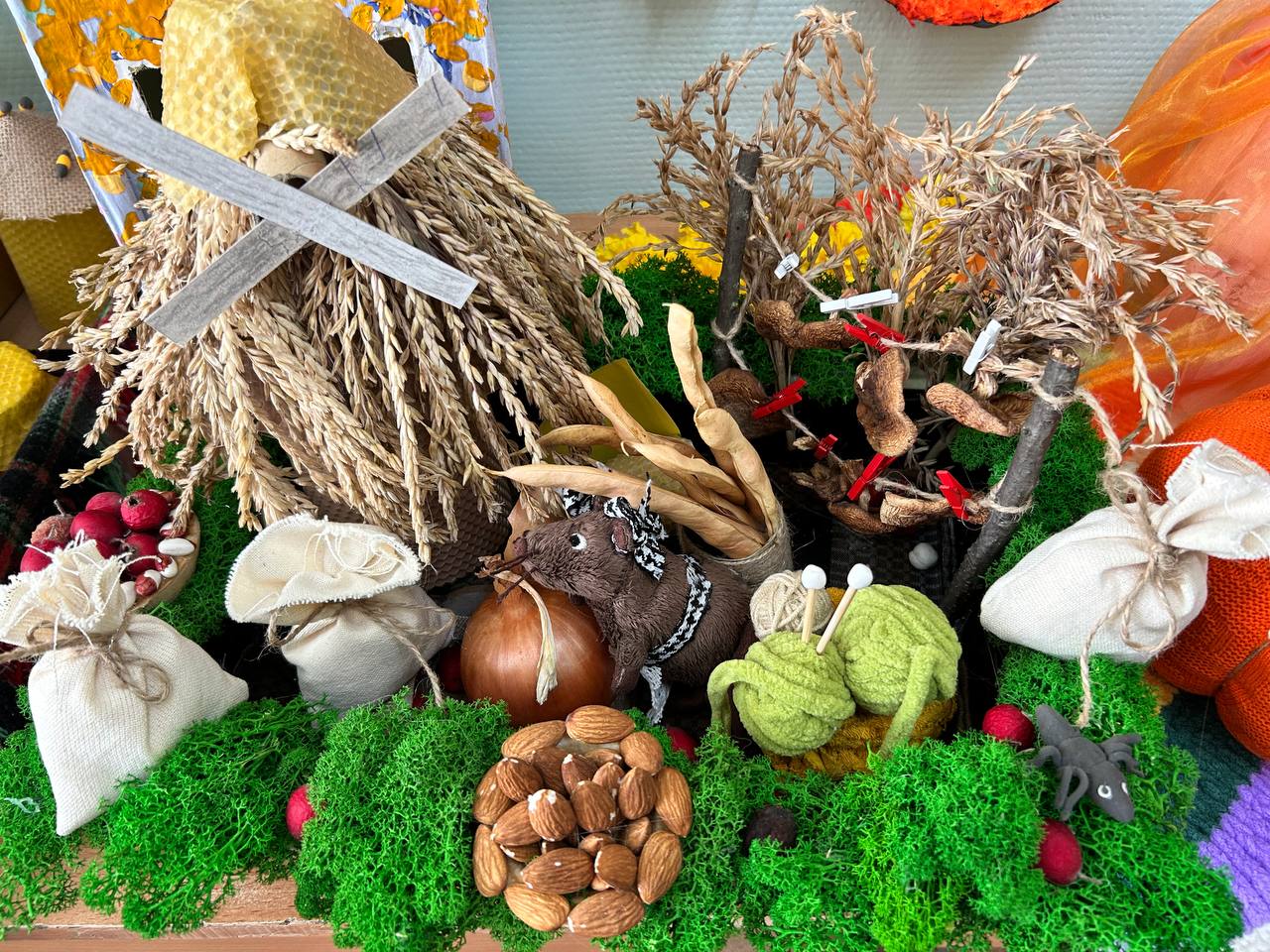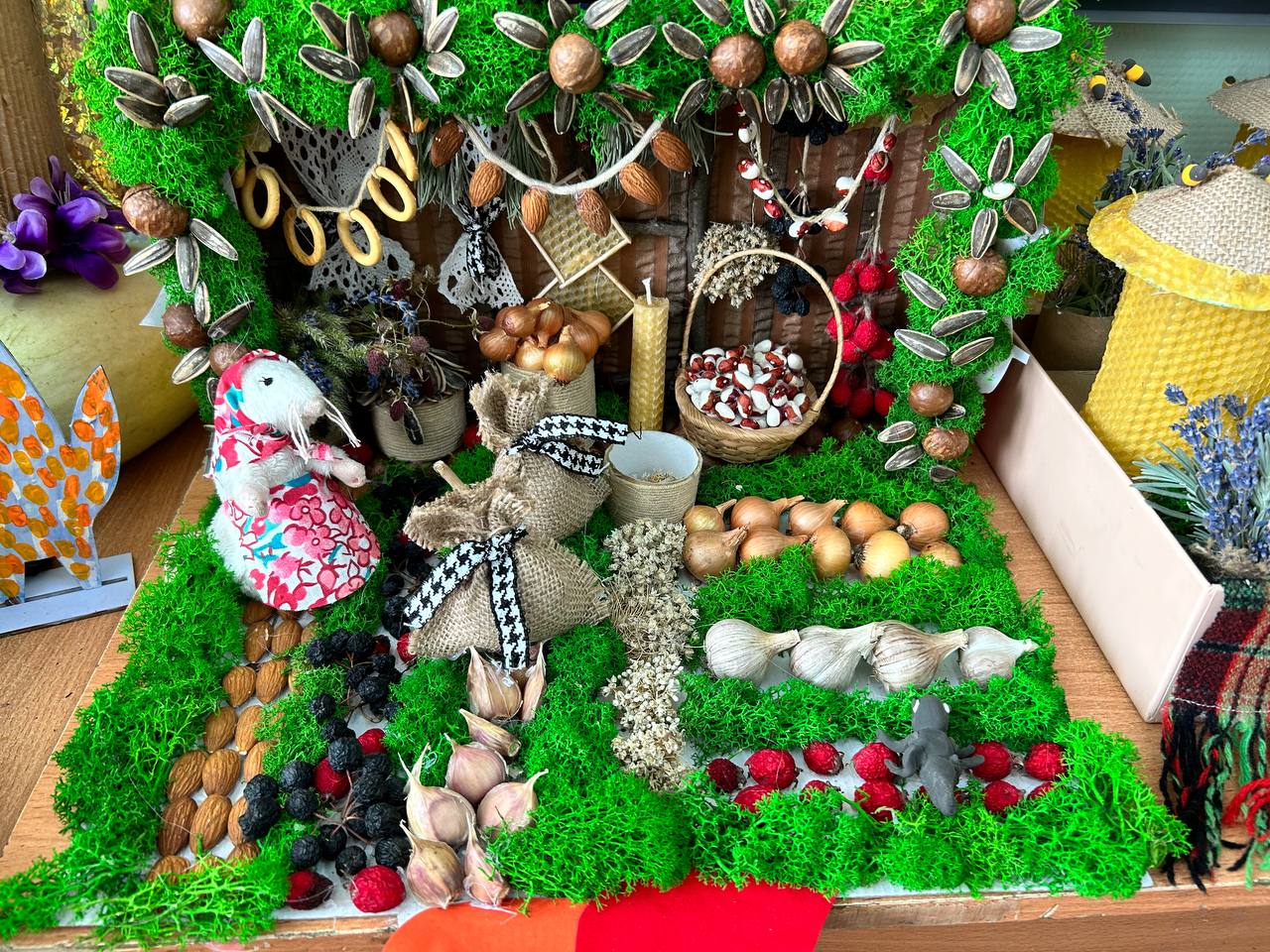 Выставка представляла собой поделки и композиции из овощей, фруктов, шишек, листьев, цветов и других видов природного материала.